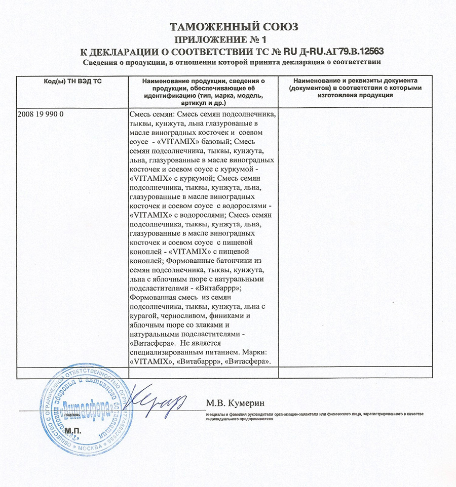 Как консультант-диетолог, я могу сказать, что состав смеси VitaMix идеально сбалансирован по содержанию белков, витаминов, микроэлементов, аминокислот. Добавьте смесь семечек в любое блюдо и качество блюда сразу повысится. Будьте здоровы.