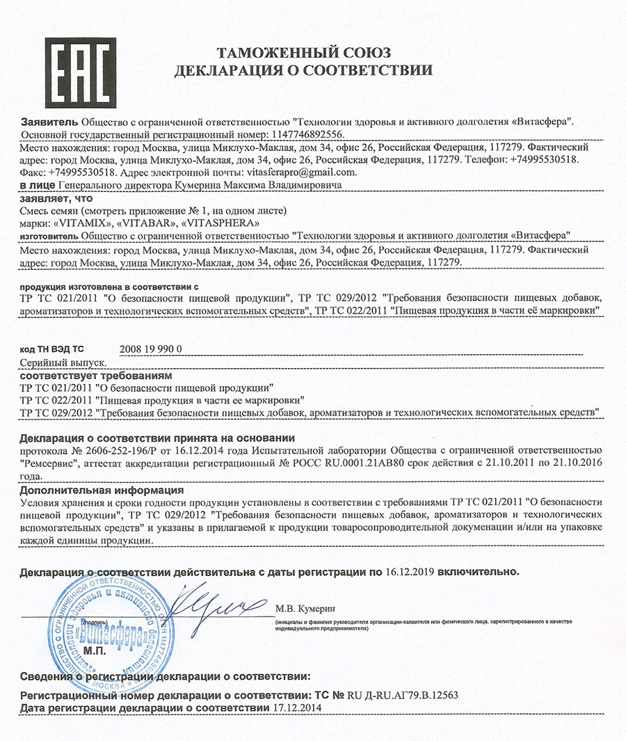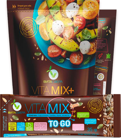 Как консультант-диетолог, я могу сказать, что состав смеси VitaMix идеально сбалансирован по содержанию белков, витаминов, микроэлементов, аминокислот. Добавьте смесь семечек в любое блюдо и качество блюда сразу повысится. Будьте здоровы.